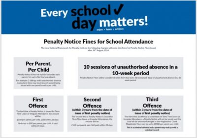 · Penalty Notices are increasing to £160 from September 2024. This can be reduced to £80 but only for the first Penalty Notice issued, if paid within 21 days – this reduction does not apply to any subsequent Penalty Notice.