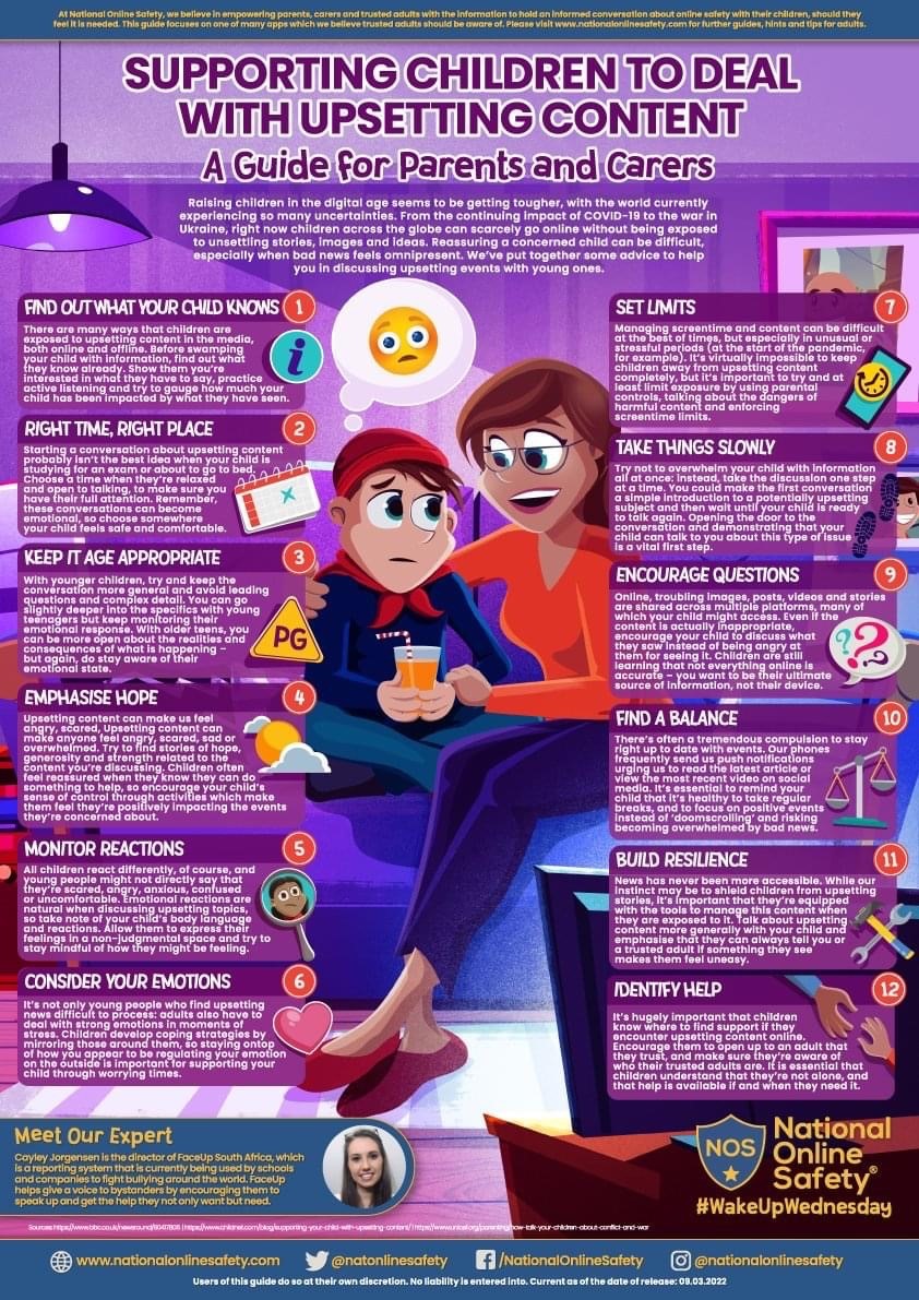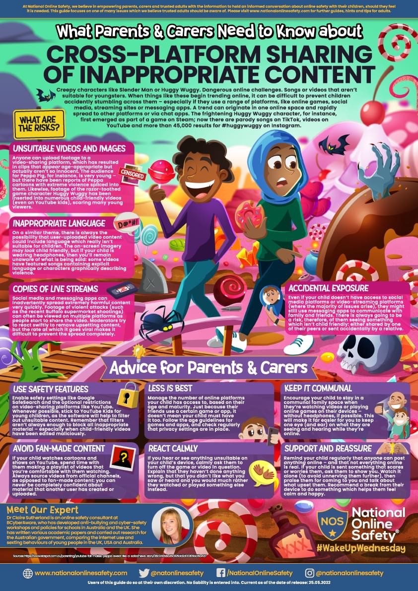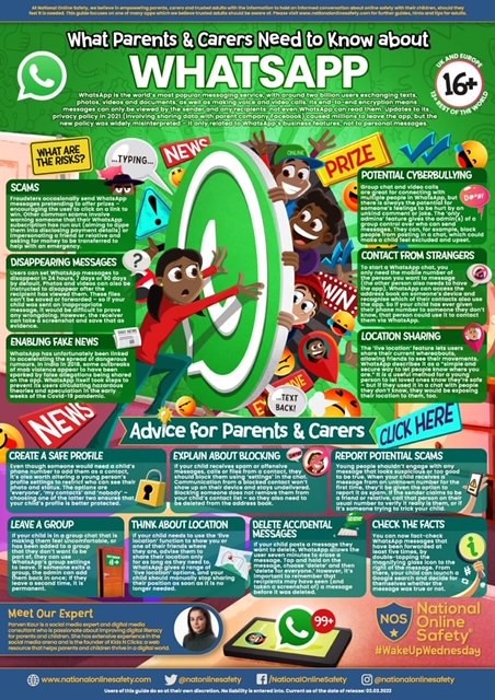 School provide lots of advice and support to support and parents including our monthly Online Safety Newsletter, weekly #WakeupWednesday Posters and many informative leaflets and parent guides.