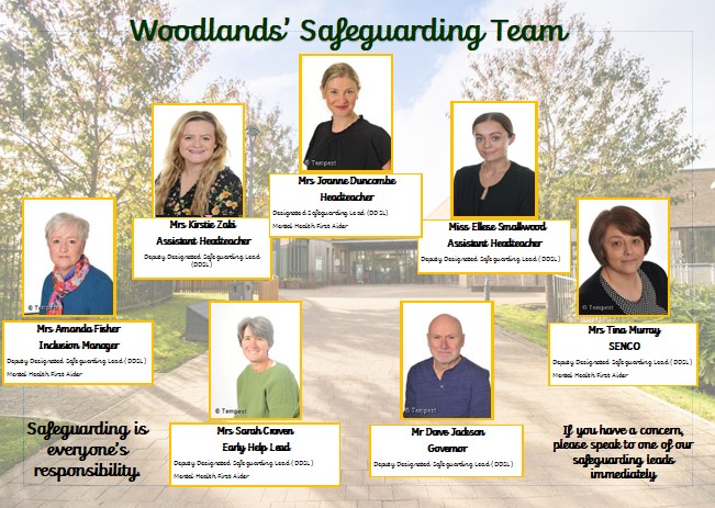 If you have any concerns about a child, including those related to Child Exploitation (either criminal or sexual) or online safety, please contact one of the safeguarding leads in school as soon as possible. As shown above your Designated Safeguarding Leads at Woodlands are Mrs Duncombe, Miss Smallwood, Mrs Zaki, Mrs Fisher, Mrs Murray, Mrs Craven and Mr Jackson.