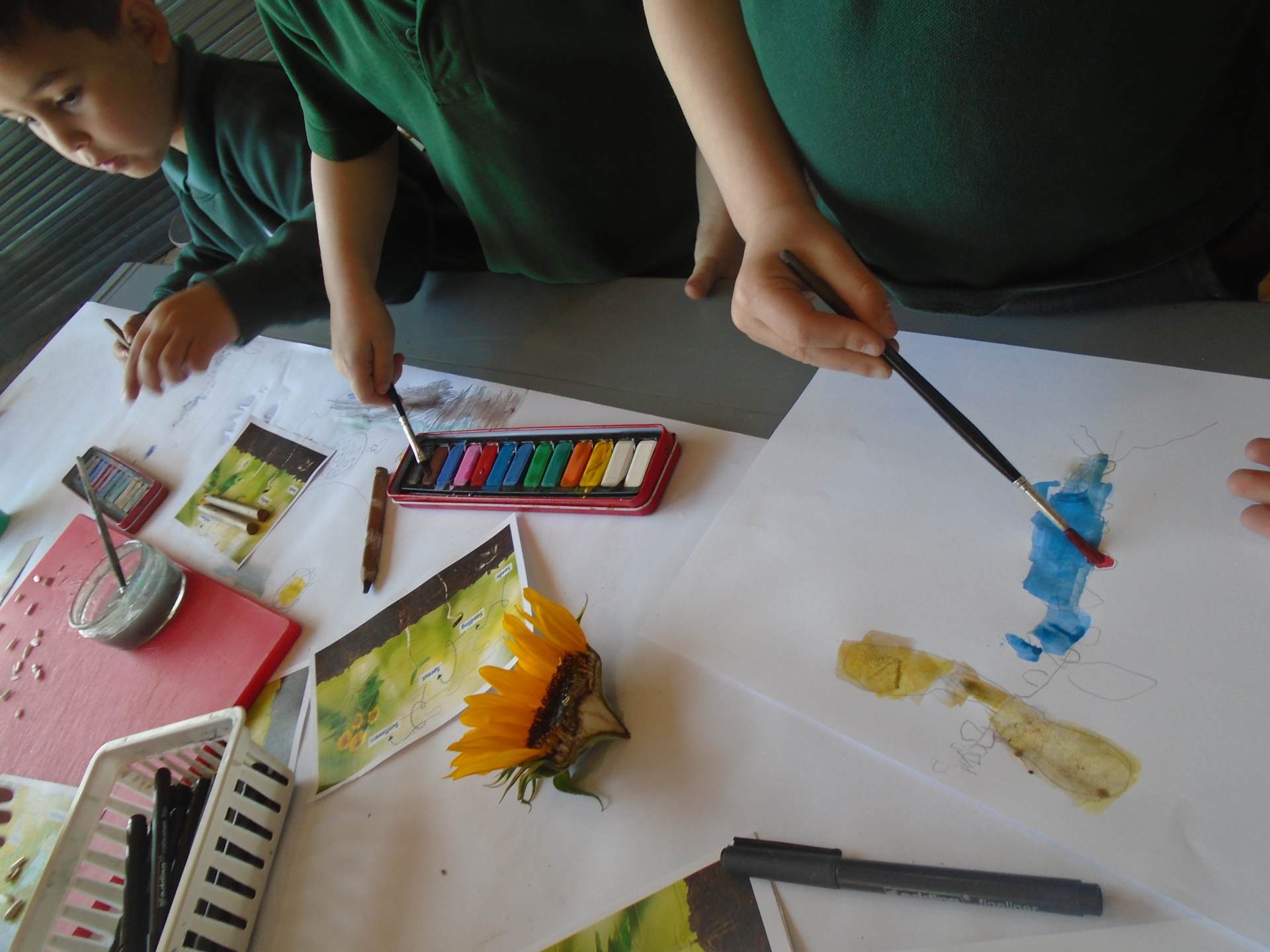 The children learnt about a key historical figure, Vincent Van Gough. The children explored the art talking about his famous pieces and representing similar themes in their own interpretations. The children had the opportunity to use a variety of painting styles and materials to represent their ideas. The educators supported discussions about how the children could use different media to create the shapes and colours on the page.