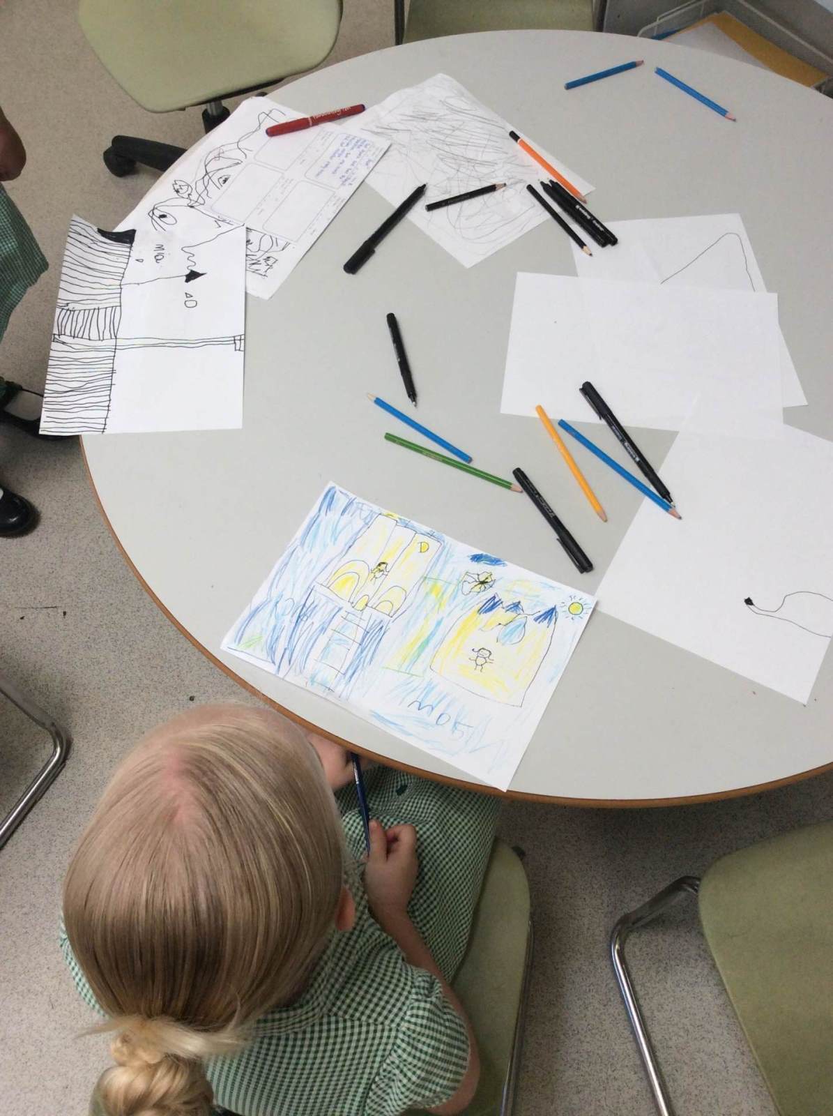 Children have developed their ideas using drawing, writing, role play and discussion. They plan to write story endings in booklet/story form next.