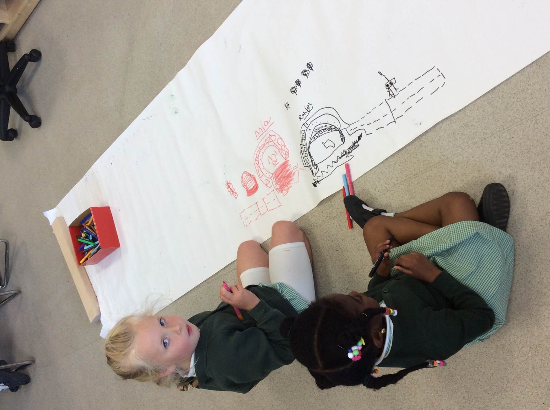 They made a trip together to the library for information books about transport, this has helped inform the children’s designs and writing.