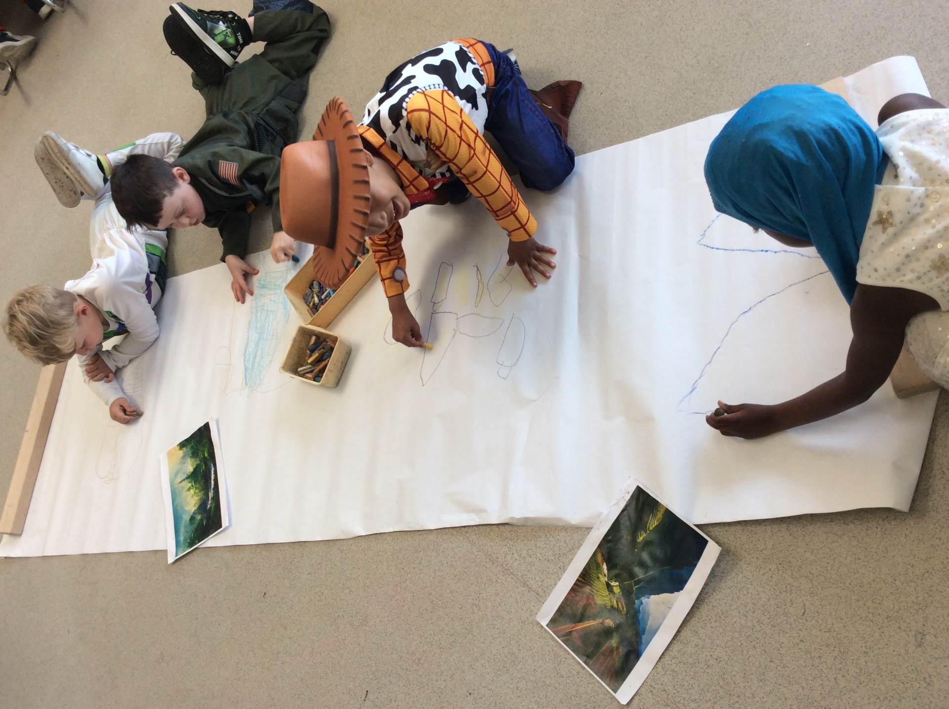 In the book corner, the children are continuing to explore silhouettes. Using light, they experiment with shadows to create their own silhouette art. They are discovering how everyday objects, and even their own profiles, can be transformed into shadow art and they are finding new ways to express their creativity through this medium.