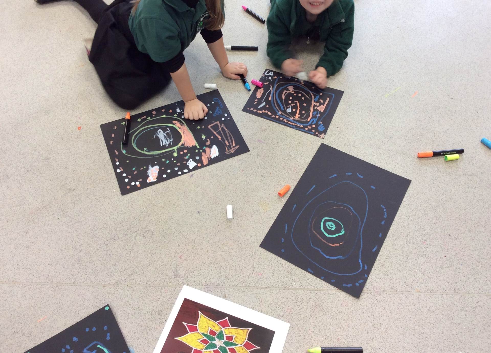 As part of our RE learning, children investigated Diwali - The Festival Of Light. They expressed their understanding through creative activities including clay diya making, chalk firework illustrations, and rangoli pattern design.