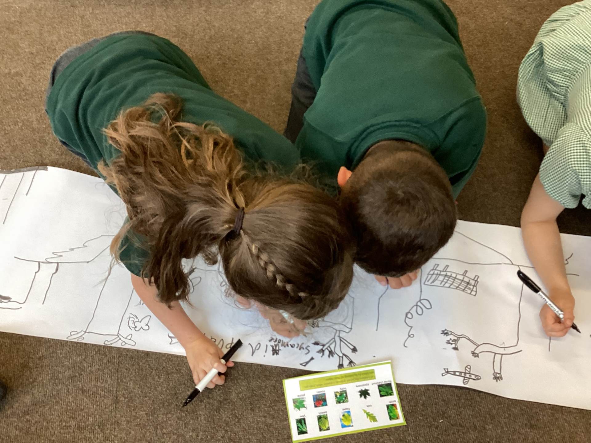To conclude their topic What is it like here?, the children explored different areas of the playground, discussing which parts they liked and which they would like to improve. They carried out surveys to gather opinions and then chose one area to redesign. Using drawings and written explanations, they shared their creative ideas for improvements with adults across the school.