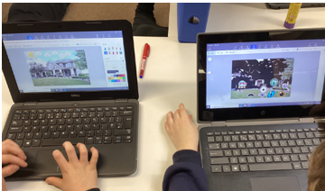 In Computing, the children have been using Paint to edit photographs by using the cropping tool, inserting images and changing the contrast of the image.