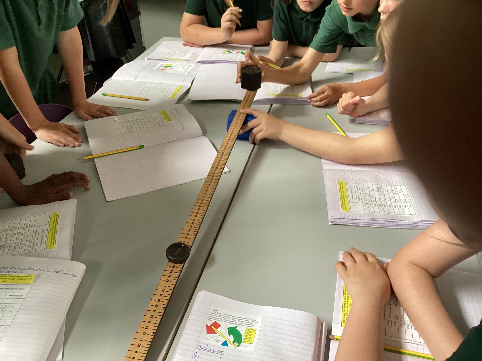 In science, we have completed our science topic on forces, with recognising that some mechanisms allow a smaller force to have a greater effect. The children investigated levers – creating a lever with a fulcrum and a 1kg load. They tried to balance the load with different weights. The children predicted and recorded their results. They then plotted their results onto a line graph. During the investigation, they managed to balance a 1kg load with a 100g weight when the 100g weight was more than 80cm away from the fulcrum. This proved that the further a force is applied from the pivot point or fulcrum of a lever, the less force is required to move the load.
