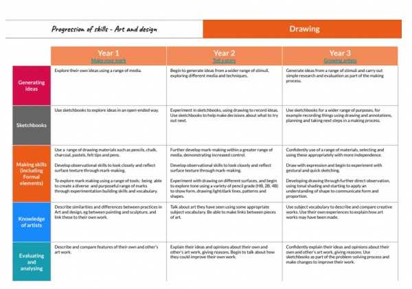 Our curriculum is carefully designed to ensure key knowledge and skills progress in a logical and sequenced way, thus enabling pupils to revisit previously taught content and to build upon it year on year. We use carefully structured progression documents to ensure that substantive and disciplinary knowledge and skills are clearly outlined and sequenced, thus enabling the children to know and remember more, as they move through school. The formal elements, a key part of the National Curriculum, are also woven throughout units. Units in each year group are organised into four core areas: