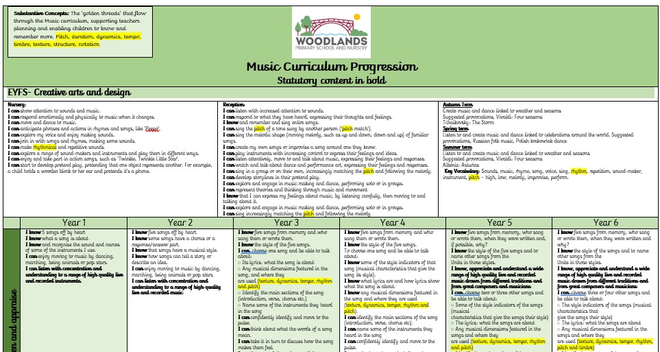 We believe that music is for everyone! Teachers ensure that the breadth of content and skills needed to progress through a child’s musical journey at Woodlands is delivered with confidence and enthusiasm and that pupils are given many opportunities to apply these.