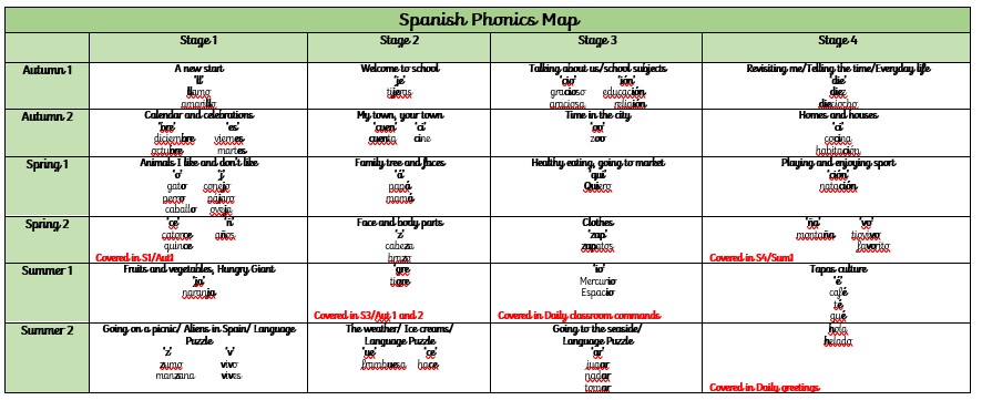 Our school follows the Primary Languages Network scheme of work, which is adapted to meet the needs of our own children. Spanish is taught through topics, age and stage appropriate, linking to the school calendar and times of the year to enable cross curricular links. The Primary Languages Network is adapted to support confident Spanish speakers to deliver creative lessons as well as enabling all class teachers to deliver exciting, focused lessons using sound clips and engaging resources. As we acknowledge children’s different learning styles, our children learn through active participation in actions, rhymes, stories and songs; the children learn in creative ways to extend, embed and combine their language skills, alongside a grammar focus and an understanding of sentence structures within another language.