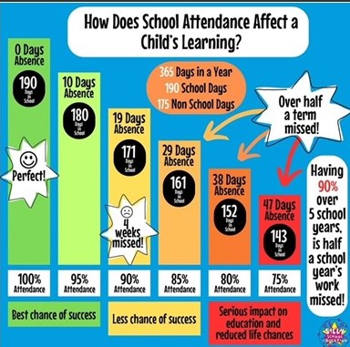 At Woodlands Primary School and Nursery we truly believe that attendance is vitally important in ensuring all children are successful throughout their entire educational journey. The Department for Education recommend that the ideal attendance should be no less than 96% in order for children to get the most from the learning opportunities provided by school.