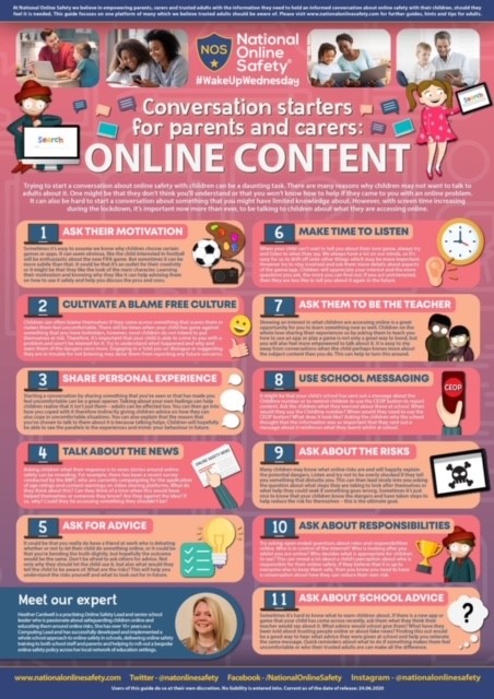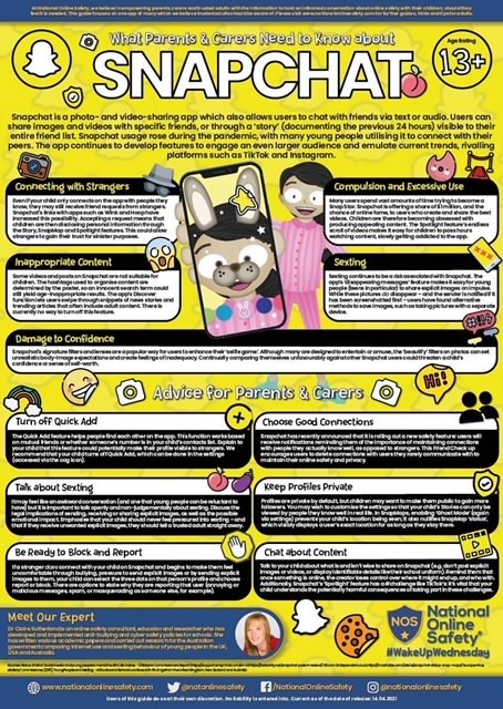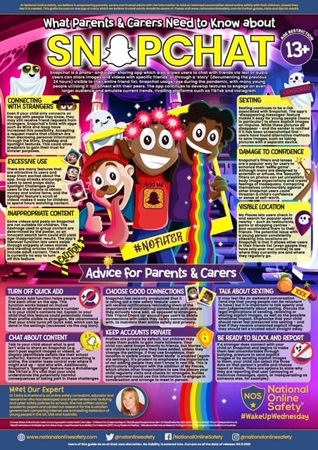 School provide lots of advice and support to support and parents including our monthly Online Safety Newsletter, weekly #WakeupWednesday Posters and many informative leaflets and parent guides.