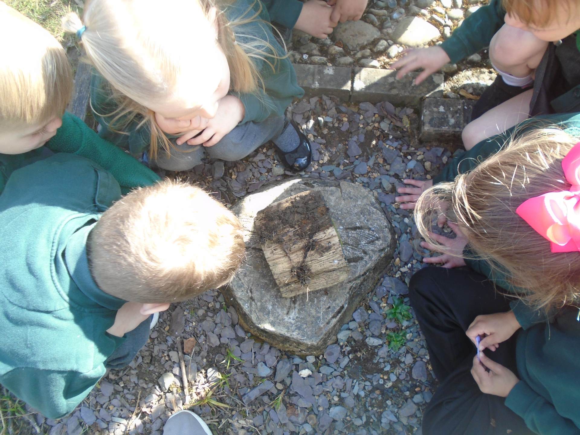 Creatures have been further investigated as the children wonder ‘What’s underneath?’ the soil or the logs.