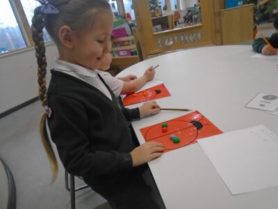 In mathematics, knowledge and understanding of the composition of numbers 0 to 5 has been consolidated, as the children have explored number bonds, ‘more’ and ‘less’ and the introduction of sequential problem solving. Currently they are beginning to apply this knowledge and understanding to the numbers 6, 7 and 8.