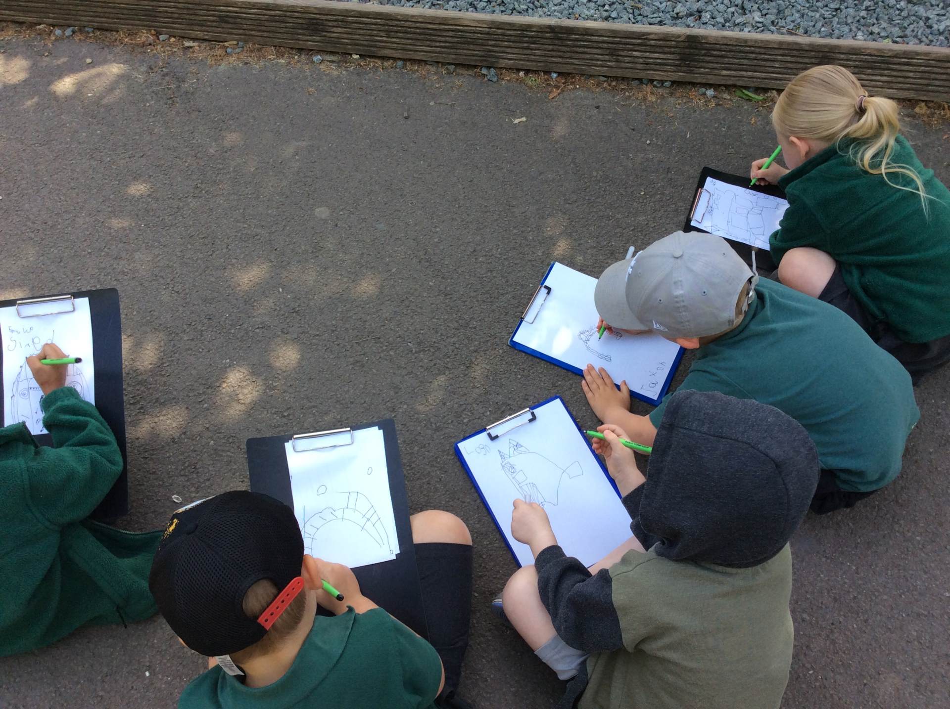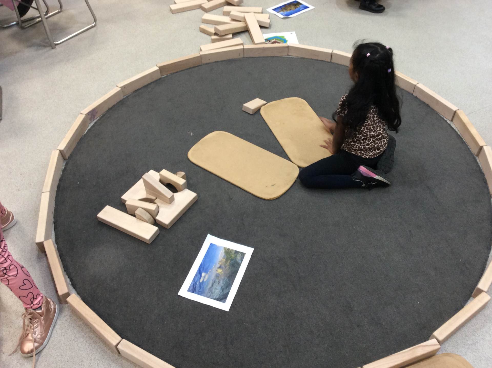 Children have been investigating the architectural features of castles, focusing on repeating patterns and shapes found in brickwork and flooring. Using a range of construction materials and shape resources, they created their own representations, developing spatial awareness and early design skills.