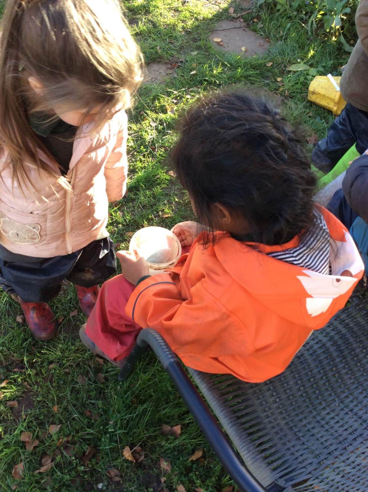 Our Snake Garden is taking the children into the fascinating world of mushrooms. They are investigating their shapes and textures, then drawing and labelling their ideas using their growing phonic knowledge. Their curiosity is leading them to ask thoughtful questions about how mushrooms grow and where they can be found. At the same time, they are observing the changing season as we move into winter, noticing how the colder weather affects our outdoor environment.