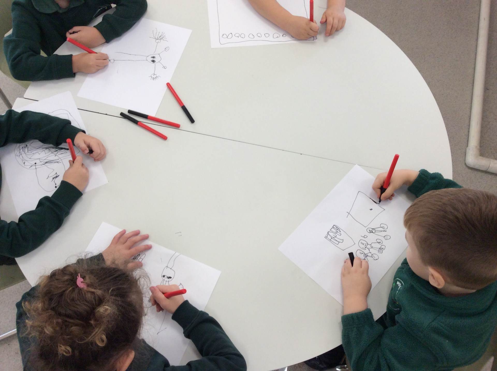 Children have developed their ideas using drawing, writing, role play and discussion. They plan to write story endings in booklet/story form next.