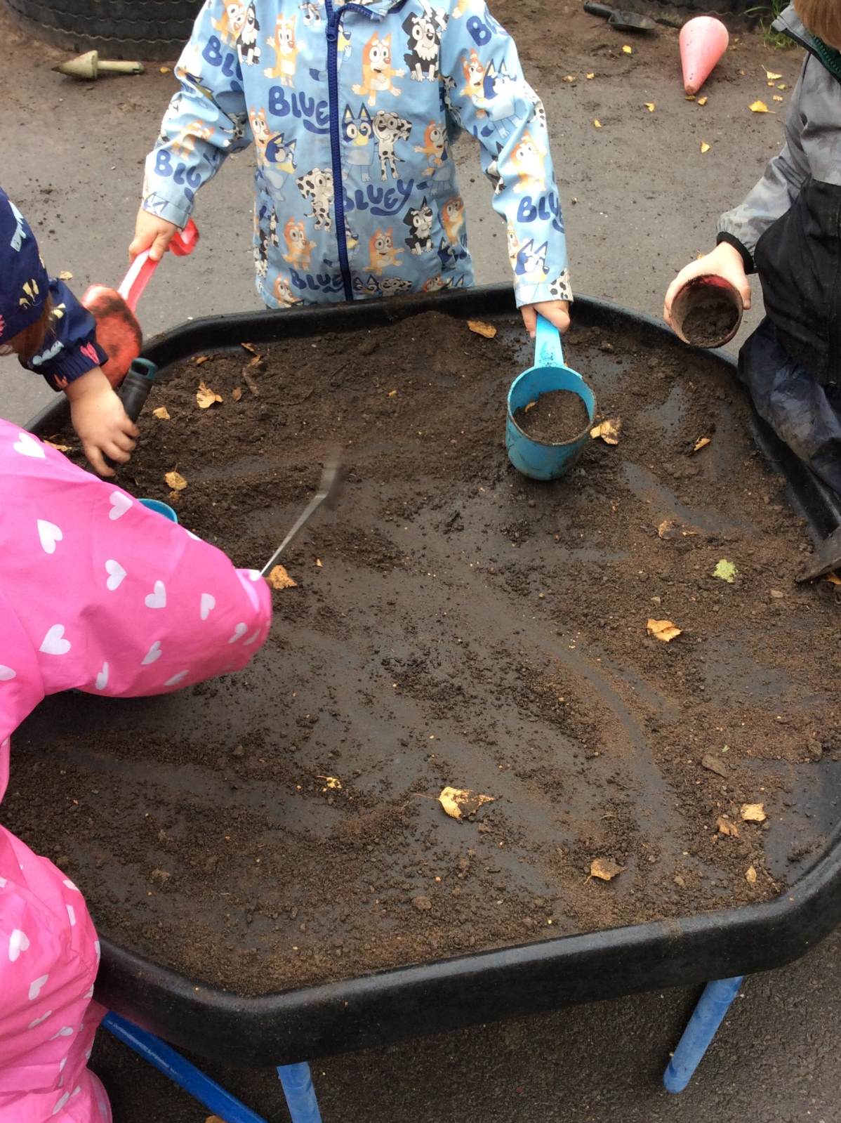 A wider range of resources have been introduced to the outside area as the weather has improved this term (paints, chalks, plants, gardening, water, seeds, quiet story areas). The children, through collaborative reflection, have expressed interest in developing planting spaces and areas to attract small creatures such as butterflies. The educators and the children have been working together to develop and improve the ‘garden’.