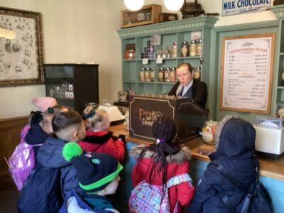 The children were transported back to the Victorian Era, discovering what everyday life was like over 100 years ago. They explored how clothes were made and worn and learned how Victorian families bought their groceries and medicines. One of the highlights of the day was experiencing a Victorian school lesson — complete with a strict teacher and chalkboards. It was a wonderful experience that brought their history topic to life. The children came back full of fascinating facts and stories to share!