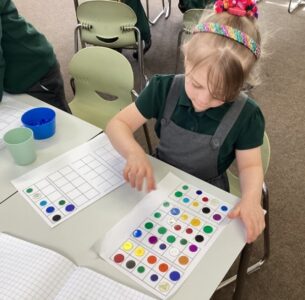 The children have been learning their numbers to 50. They have been identifying numbers that are 1 more or 1 less than a given number. The children have also been learning that two-digit numbers are made up of tens and units. They have been using dienes, tens frames, counters and jotting to represent tens and units within numbers up to 50.
