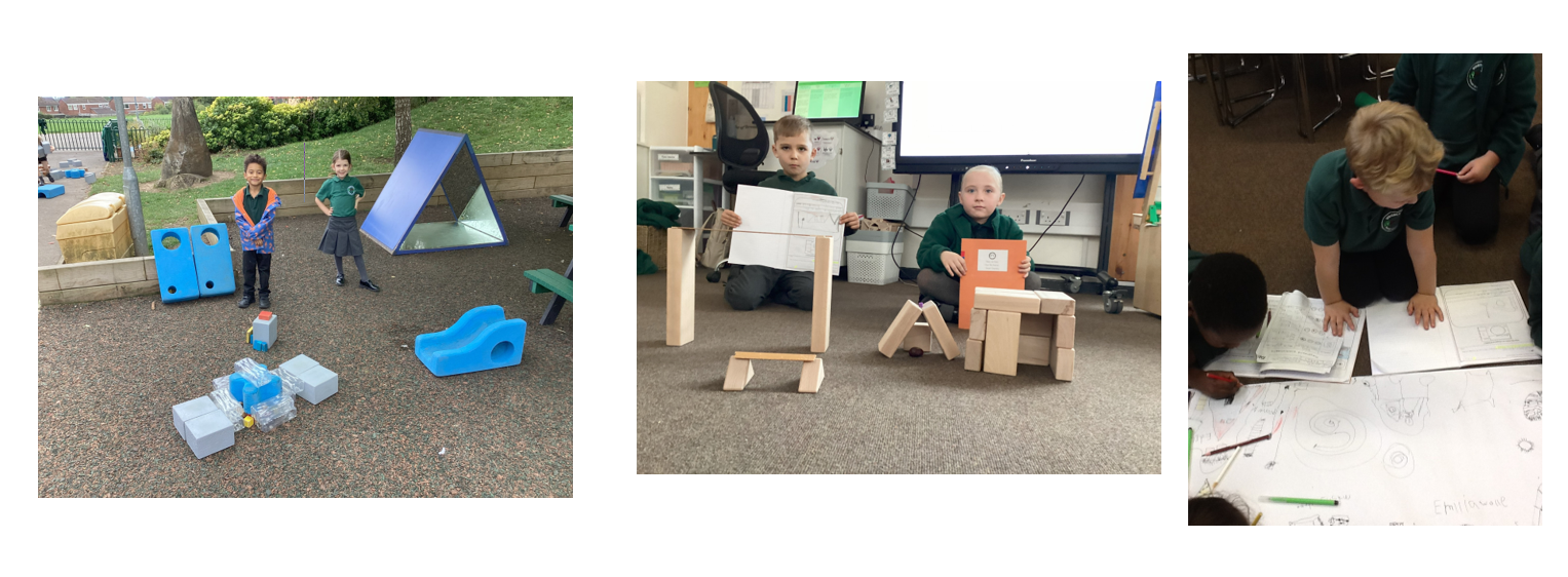 To conclude their topic What is it like here?, the children explored different areas of the playground, discussing which parts they liked and which they would like to improve. They carried out surveys to gather opinions and then chose one area to redesign. Using drawings and written explanations, they shared their creative ideas for improvements with adults across the school.